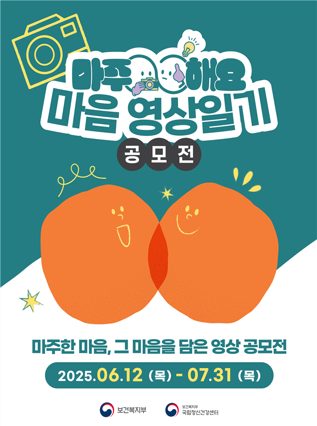 [피앤피뉴스=마성배 기자] 일상 속 정신건강의 중요성과 편견 극복의 메시지를 국민이 직접 영상으로 표현하는 공모전이 열린다. 보건복지부 국립정신건강센터는 6월 12일부터 7월 31일까지 ‘2025년 마주해요! 마음 영상 일기 공모전’을 개최한다고 밝혔다.