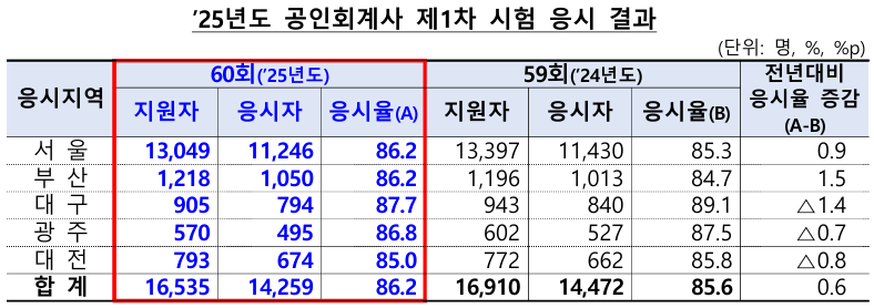 올해 공인회계사 1차, 응시자 수 감소 속 응시율은 증가↑...대구 응시율 가장 높아