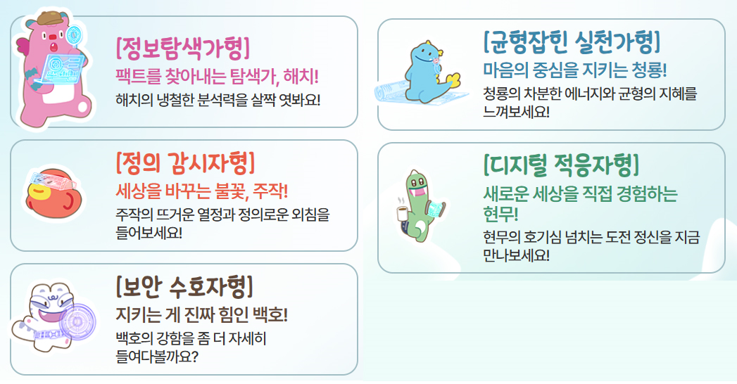 진단 결과는 단순한 유형 분류에 그치지 않는다. 각 페르소나에 맞춘 애니메이션 ‘해치와 소울프렌즈의 디지털 유니버스’로 자연스럽게 이어지며, 시민들이 온라인에서 안전하고 책임감 있게 행동하는 ‘디지털 시민성’을 기를 수 있도록 구성됐다.