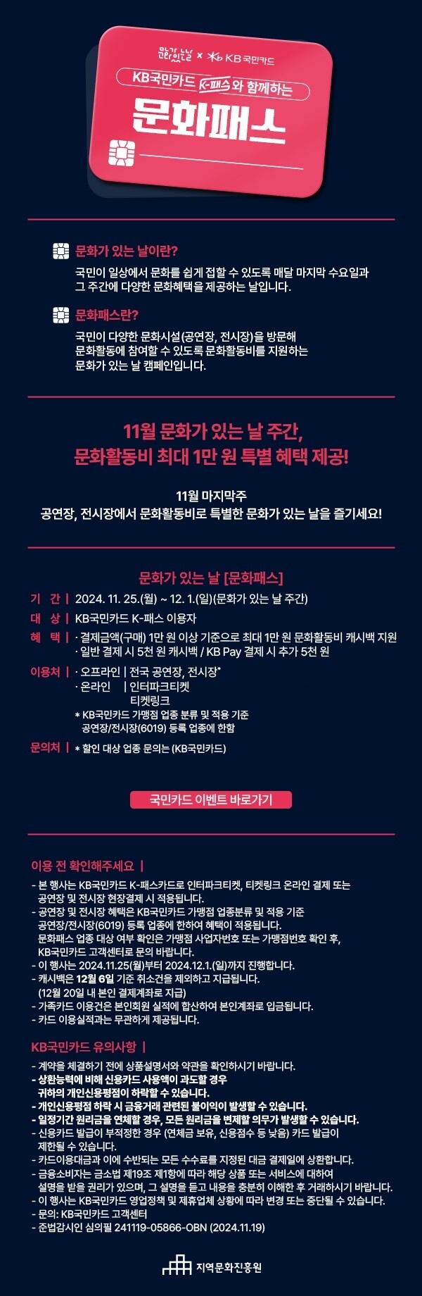 <사진> 11월 문화가 있는 날 X KB국민카드 K-패스, 문화활동 참여 활성화 위한 ‘문화패스' 캠페인 (제공=지역문화진흥원)