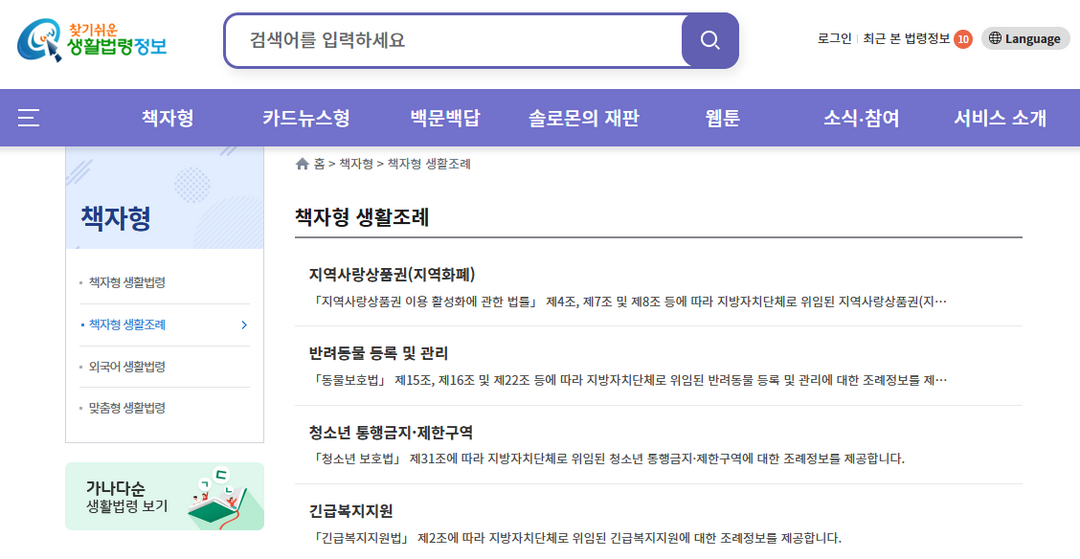 특히 지난해부터는 법령뿐 아니라 각 지자체 조례까지 포함한 ‘생활조례’ 서비스도 시작됐다. 현재 자전거 이용, 출산장려금, 옥외광고물 등 13개 주제를 다루며 총 2,052개의 생활조례 콘텐츠를 제공 중이다.