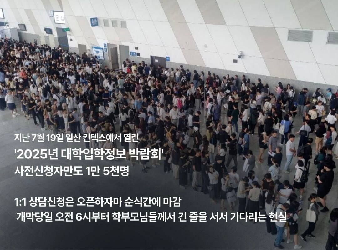 임 교육감은 지난 19일 고양 킨텍스에서 개최된 ‘2025학년도 수시 대학입학정보박람회’ 현장을 둘러본 뒤 박람회 개막 당일 오전 6시부터 줄을 서서 기다린 학부모들의 이야기를 전하며, “대학입시에 고등학교 교육이 좌우되는 지금의 상황이 과연 정상적인지 예전부터 고민해 왔다”고 말했다.