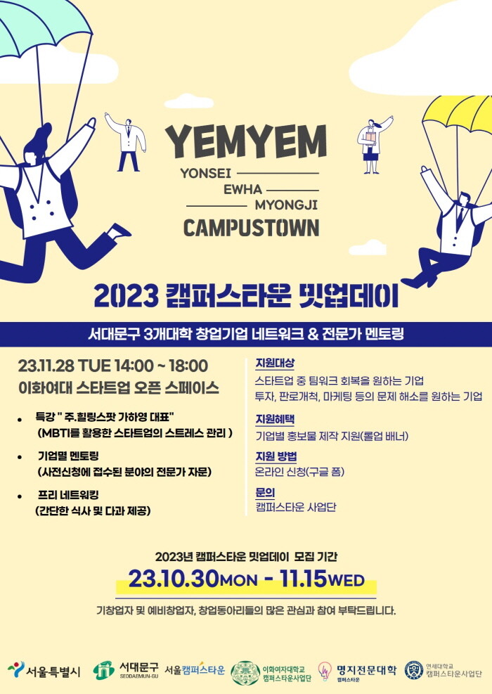 [피앤피뉴스=마성배 기자] 명지전문대학(이하 명전)이 서울 서대문구 3개 대학(명지전문대학, 이화여자대학교, 연세대학교) ‘2023 캠퍼스타운 하반기 밋업데이’를 지난 11월 28일(화) 이화여자대학교(이하 이대)와 공동 주관으로 진행했다고 밝혔다.