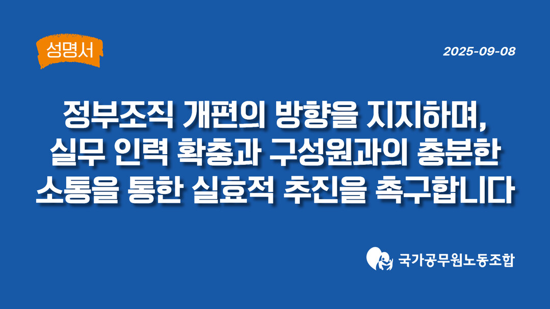 노조는 “정부조직 개편이 단순한 구조 변경에 그치지 않고, 국민과 공직자 모두에게 실질적인 혁신으로 이어지려면 정책의 주체인 공직자의 전문성과 실무 역량을 존중하는 환경이 마련돼야 한다”고 거듭 강조했다.