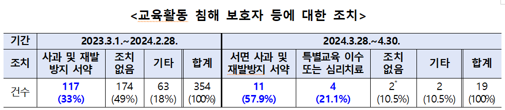 또한, 교육활동 침해 보호자에 대한 고소·고발 건수도 증가해 악성 민원을 단호하게 대응하고 있다.