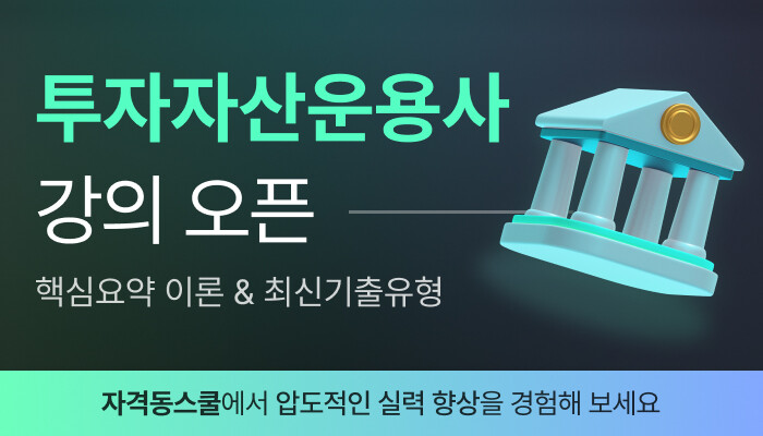 한편, 2025년 투자자산운용사 시험 대한 자세한 사항은 금융투자협회 자격시험센터 홈페이지에서 확인 가능하다. 관련 인강에 대한 정보는 자격동스쿨 홈페이지를 통해 확인할 수 있다.
