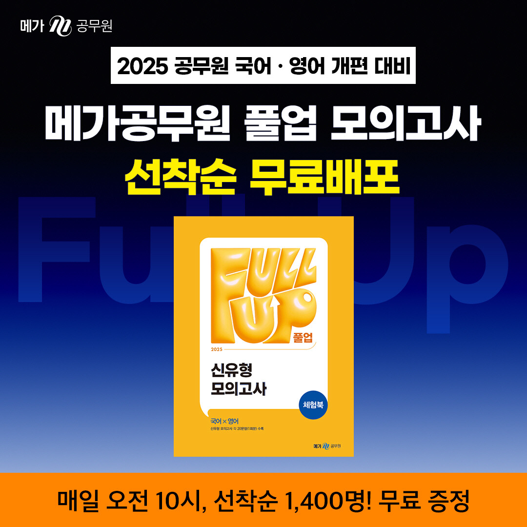 [피앤피뉴스=마성배 기자] 메가스터디교육의 공무원 시험 전문 브랜드 ‘메가공무원’이 2025년 공무원 시험의 국어·영어 과목 전면 개편에 대비하여 2025 Full-Up(풀업) 모의고사를 출시했다고 밝혔다.