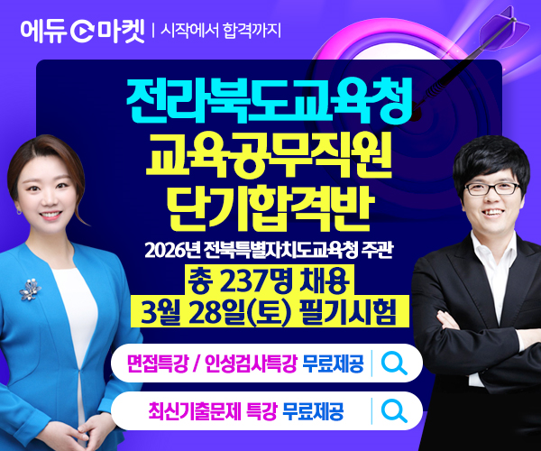 이에 따라 에듀마켓은 전북특별자치도교육청 교육공무직원 시험 대비를 위한 ‘2026 전라북도교육청 교육공무직원 단기합격반’을 개설해 운영 중이다. 해당 패키지 강의는 수강 기간 60일 과정으로, 단기간 집중 학습이 가능하도록 출제 가능성이 높은 문제 중심으로 압축 구성됐다.