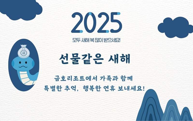 금호리조트 관계자는 “2025년 을사년 새해를 맞아 설 명절을 더욱 뜻깊게 보낼 수 있도록 한국 고유의 전통놀이와 지점별 특색을 담은 다양한 이벤트를 진행하게 됐다”라며 “금호리조트가 준비한 이번 행사를 통해 단순 휴식 그 이상을 넘어 다채로운 고객 체험 이벤트를 경험하며 가족 간 유대를 더욱 강화할 수 있는 특별한 시간이 되길 바란다”라고 말했다.