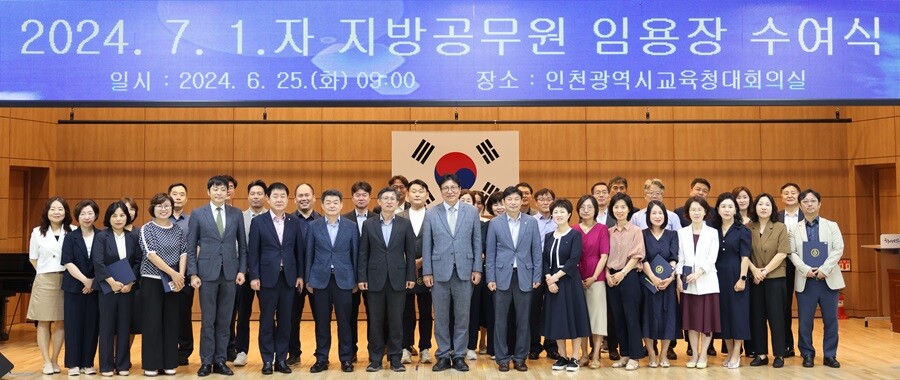 <인천시교육청은 지난 2024년 6월 25일 시교육청 대회의실에서 7월 1일자 인사발령 일반직 공무원을 대상으로 임명장을 수여했다. 사진: 인천시교육청>