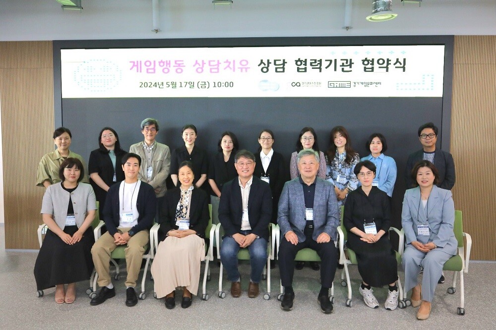 경기도와 경기콘텐츠진흥원이 운영하는 경기게임문화센터는 이날 도내 전문 심리상담 기관 15개소와 ‘2024년 게임 과몰입 상담치유 프로그램 운영’을 위한 업무협약을 체결했다.