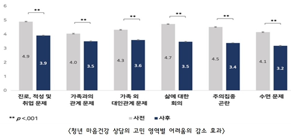 지난 7일 서울시는 심리적으로 어려움을 겪는 청년을 대상으로 일대일 전문 심리상담 서비스를 제공하는 ‘청년 마음건강 지원사업’에 대한 2023년 성과평가 고도화 연구 결과를 발표했다.
