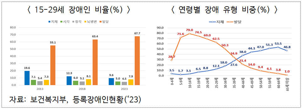 국내 등록 장애인은 약 264만 명(전체 인구의 5.1%)으로, 이 중 발달장애인은 10.3%를 차지한다. 특히 청년층(15~29세)의 발달장애 비율은 70%에 이르며, 지속적으로 증가하는 추세다.