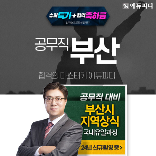 에듀피디 공무직 수험 관계자는 “일반상식 과목의 시험범위가 ‘부산시정(시정·역사·문화·인물 등) 및 일반상식(정치, 경제, 시사, 법 등 사회 전반)’을 포함하고 있어 학습범위가 광범위하기 때문에 부산시 공무직 최신 기출 경향에 맞춰 출제 내용 및 개념을 집약해 주는 강의를 통해 학습하는 것이 바람직하다”라고 전했다.