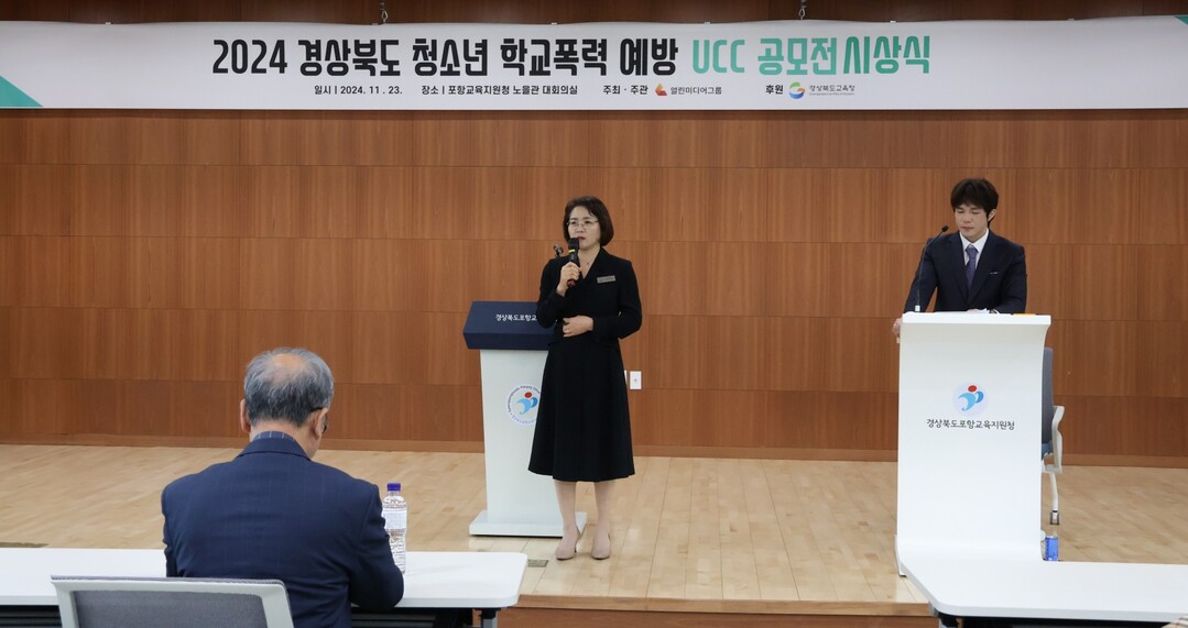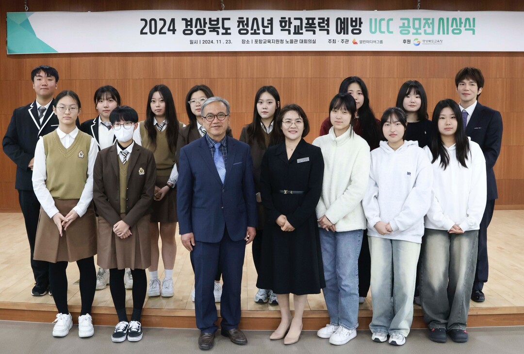 [피앤피뉴스=마성배 기자] 열린미디어그룹이 주최하고 경상북도교육청이 후원한 ‘2024 경북 청소년 학교폭력 예방 UCC 공모전’ 시상식이 지난 23일 경상북도포항교육지원청에서 성황리에 개최됐다. 이번 행사는 플레이제이가 진행을 맡았으며, 김영희 경상북도교육청 학생생활과 과장, 김덕수 열린미디어그룹 경북본부장, 포항교육지원청 관계자 등이 참석했다.