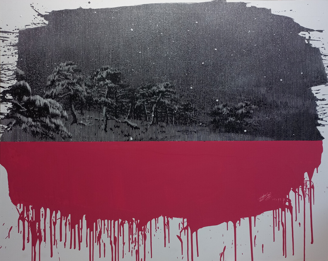 작가가 서예적 필획을 통해 강한 리듬감과 운동성을 담아낸 ‘일필휘지(一筆揮之)의 색면’ 위로 칼날을 사용해 선을 파낸 흔적이 드러난다. 이는 동양화의 육법 중 최고 경지인 기운생동(氣韻生動)을 느낄 수 있는 동시에 골법용필(骨法用筆)과도 맥락을 같이하며 작가가 말하고자 하는 묵시적인 울림에 힘을 싣는다.