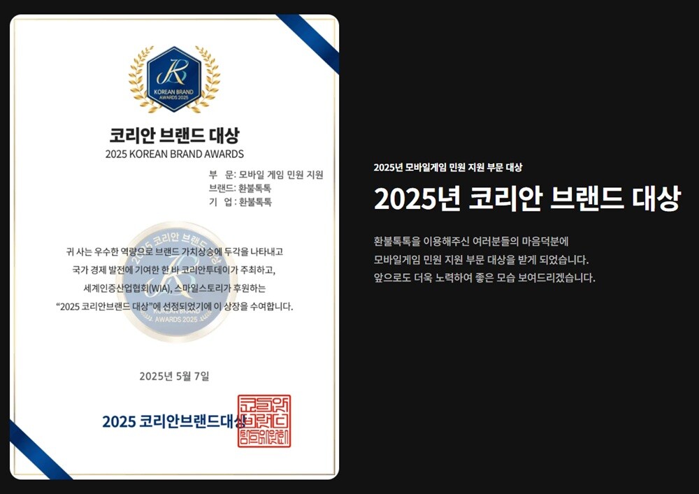 환불톡톡은 이와 같은 운영 방식은 소비자 권익 보호를 중심에 둔 서비스라는 평가를 받으며 ‘2025년 코리안 브랜드 대상’을 수상하기도 했다.