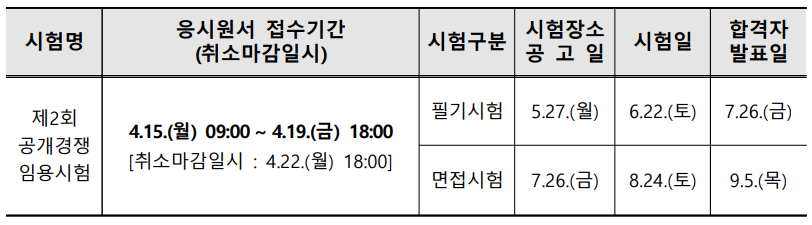 2회 공개경쟁 원서접수, 4월 15일~19일...필기 6월 22일 시행