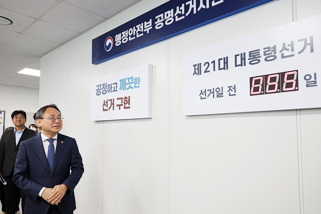 [피앤피뉴스=마성배 기자] 오는 6월 3일로 확정된 제21대 대통령선거가 55일 앞으로 다가오면서, 행정안전부가 ‘공명선거지원상황실’을 조기 가동하고 선거사무 전반에 대한 본격적인 지원에 착수했다. 특히 SNS를 통한 특정 후보 지지·비방 등 공무원의 선거 개입 행위에 대해 대대적인 감찰을 예고했다.
