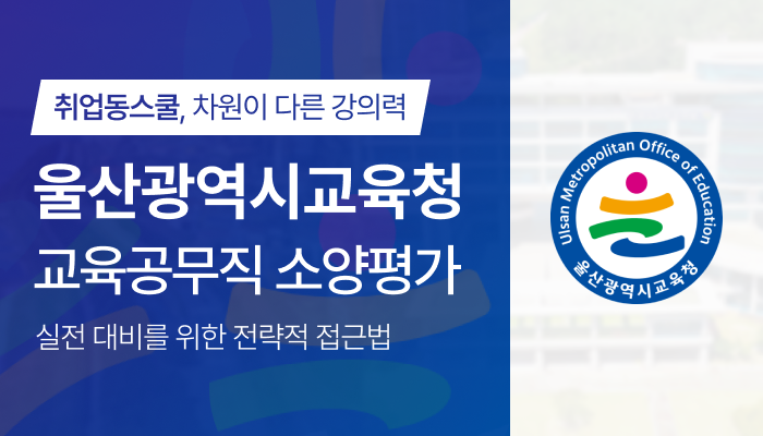 [피앤피뉴스=마성배 기자] 취업동스쿨은 2025년도 울산광역시교육청 교육공무직 공개경쟁시험에 대비하는 소양평가 인터넷 강의를 오픈했다고 밝혔다.