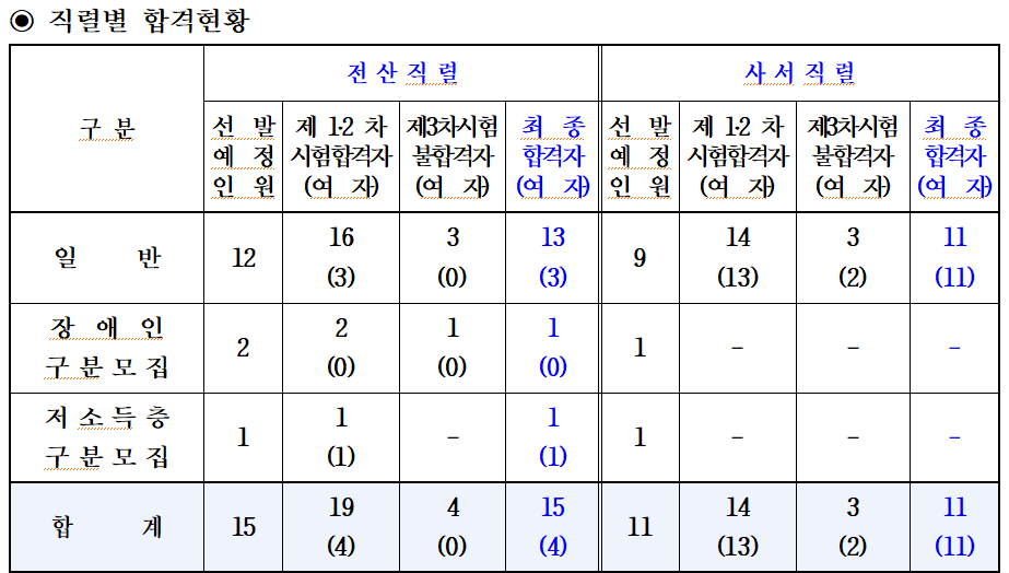 전산·사서 직렬 여성 합격자 비율은 57.69%로 남성보다 높았다.