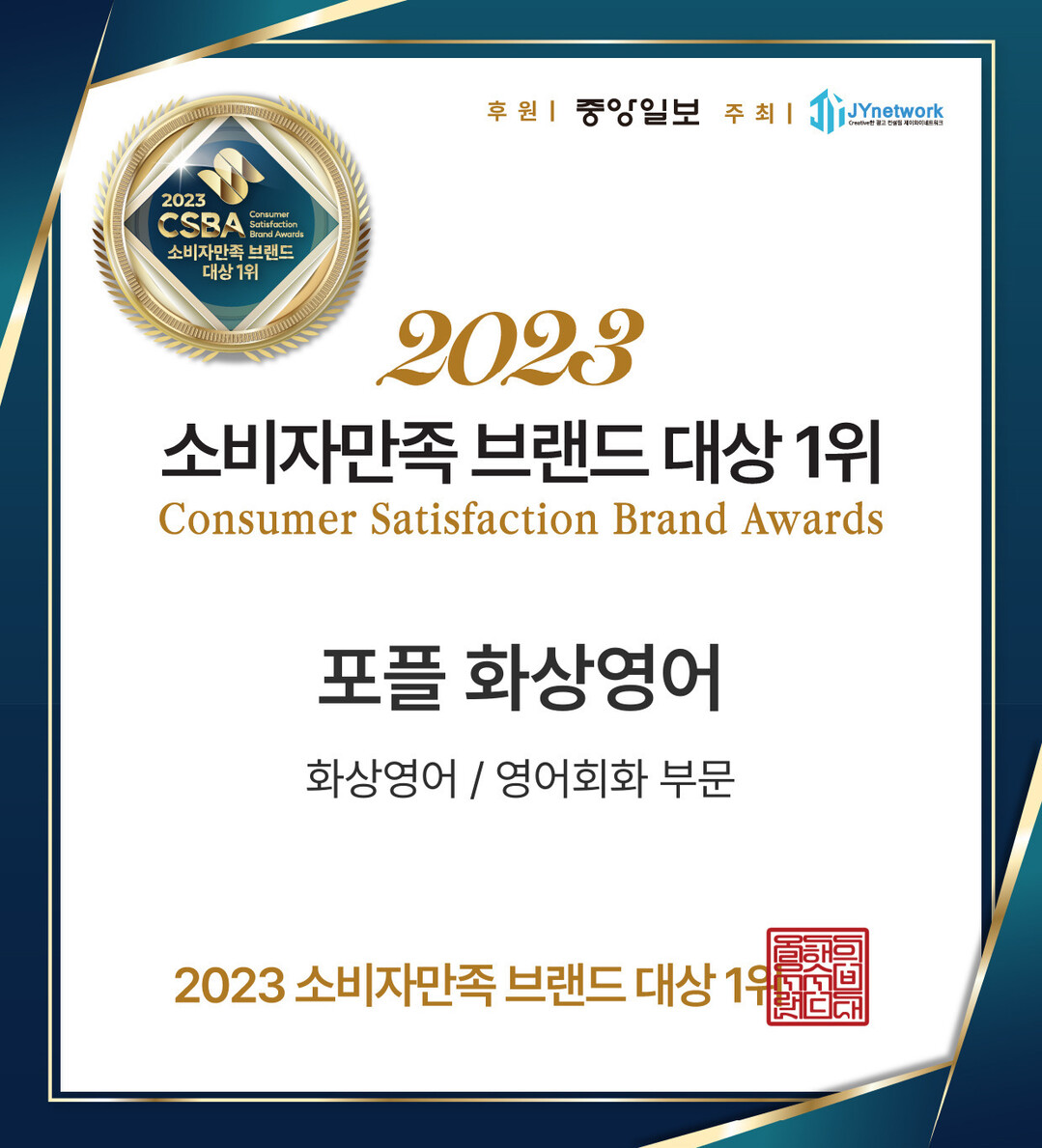 포플의 최기쁨 교수진 담당 이사는 “2023년 소비자만족 브랜드 대상에서 1위에 선정되어 매우 감사드리며, 교육 전문가의 관점에서 학생들이 영어 학습에 실질적 도움이 되는 참된 교육을 제공하기 위해 임직원 모두 최선을 다하겠다”라고 말했다.