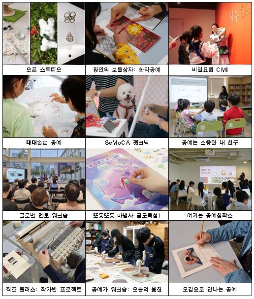 치매 고령층과 아동 취약계층을 대상으로 한 복지형 공예 프로그램도 확대된다. ‘찾아가는 공예교육’ 프로그램 <공예는 소중한 내친구>는 아동센터 및 키움센터를 직접 방문해 체험 기회를 제공하며, <오감으로 만나는 공예>는 치매안심센터와 협력해 치매 어르신의 감각 자극과 기억 회복을 돕는 수업을 진행한다. 이들 프로그램은 서울 서북권까지 지역을 넓혀 운영된다.