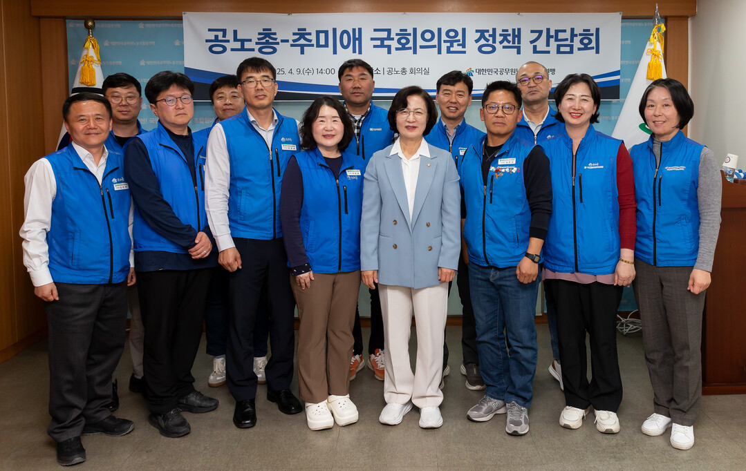 이에 대해 추미애 의원은 “윤석열 정부는 공무원 노동자에게 희생만을 강요하고, 아무런 보상도 없었다. 공무원이 국가의 일방적인 도구가 아니라, 권리를 가진 노동자임을 인정해야 한다”며 “오늘 공노총에서 주신 의견을 당 차원에서도 무겁게 받아들여, 대선 이후 새로운 정부에서 개선책이 마련될 수 있도록 최선을 다하겠다”고 화답했다.