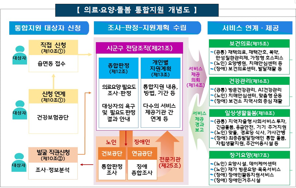 ‘통합돌봄’은 일상생활이 어려운 노인과 장애인 등에게 건강·복지·주거·돌봄 서비스를 통합 제공해 ‘살던 곳에서의 삶’을 유지하도록 지원하는 제도다.