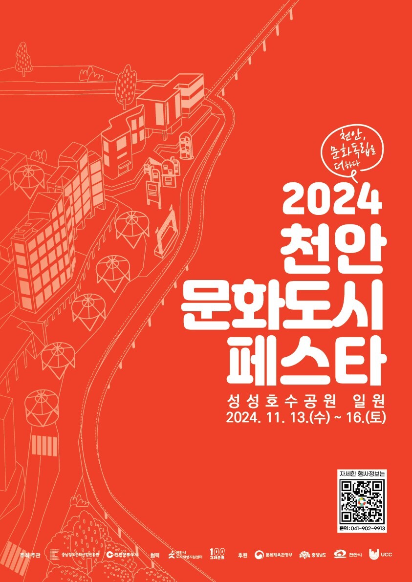 2024 천안문화도시 페스타, ‘천안, 문화독립을 더하다’가 오는 11월 13일(수)부터 16일(토)까지 천안성성호수공원 일원에서 개최된다.