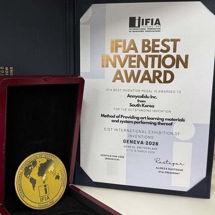 국내 에듀테크 기업 애니코에듀가 글로벌 무대에서 교육 기술의 혁신성과 상용화 가능성을 동시에 인정받았다. 애니코에듀는 스위스 제네바에서 3월 11일부터 15일까지 개최된 ‘제51회 제네바 국제 발명 전시회’에 참가해 ‘IFIA 최고 발명상’을 수상했다고 밝혔다.
