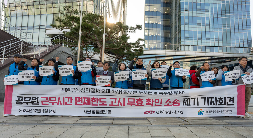 12월 4일 서울 서초구 서울행정법원 앞에서 공동 기자회견을 열고 정부의 고시에 절차적·내용적 문제점을 제기하며, 공무원 노사관계의 특수성을 무시한 결정이라고 비판했다.