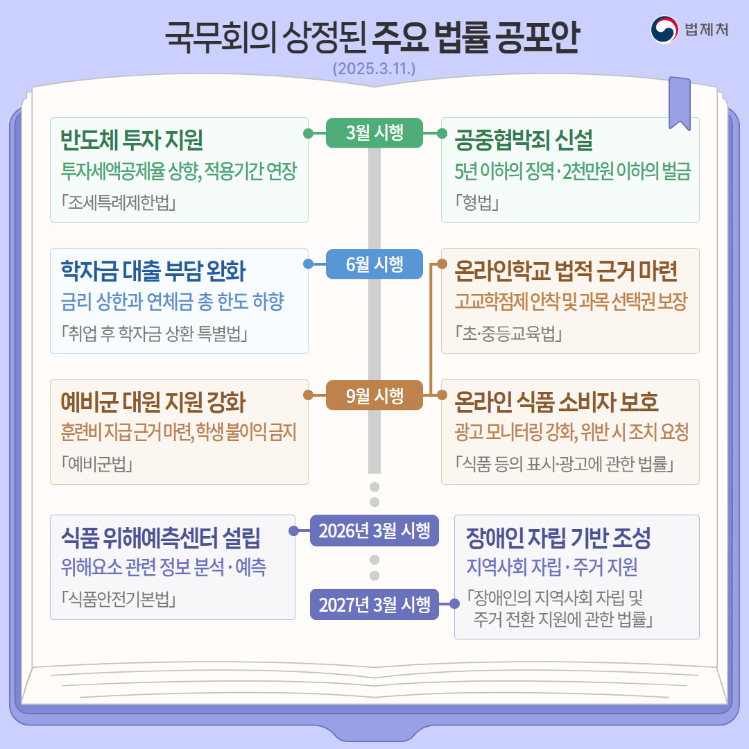 | ▲국무회의 상정된 주요 법률 공포안(2025.3.11) 카드뉴스(법제처 제공) |