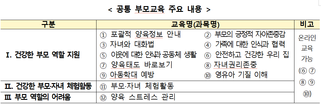 건강한 부모 역할·체험활동 등 3개 주제, 총 12개 교육과정 구성