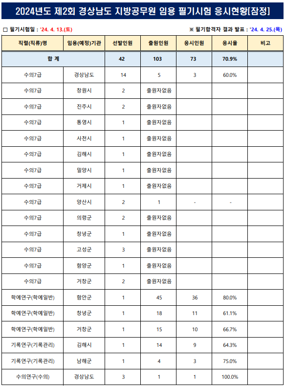 피앤피뉴스 - 2024년도 제2회 경상남도 지방공무원 임용 필기시험 응시현황[잠정]