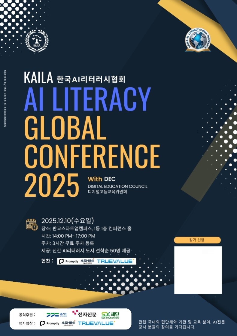 KAILA 한국AI리터러시협회는 지난 10일 판교스타트업캠퍼스에서 ‘KAILA AI 리터러시 글로벌 컨퍼런스 2025’를 성황리에 개최했다고 11일 밝혔다.