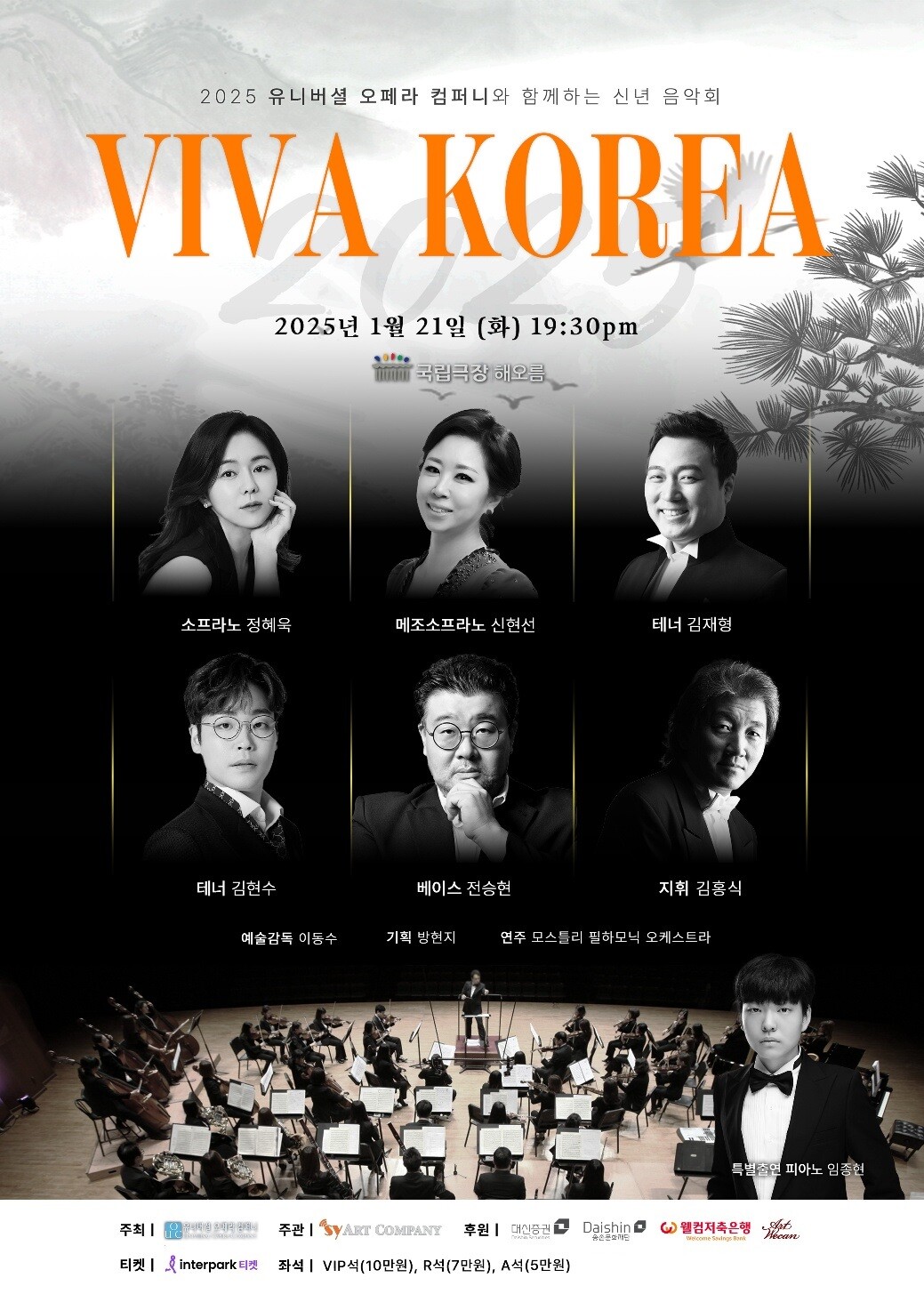 유니버셜오페라컴퍼니가 창립 18주년을 기념하여 2025 신년음악회 ‘VIVA KOREA‘를 개최한다. 공연은 1월 21일 저녁 7시 30분 국립극장 해오름극장에서 진행된다. 이번 공연은 단순한 클래식 공연을 넘어, 문화예술의 힘으로 국민에게 희망과 위로를 전하고 사회적 화합을 도모하는 뜻깊은 자리다.