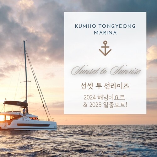 ‘2024년 해넘이 요트’는 오는 12월 31일 오후 4시에 출항해 한산대첩 접전지에서 로맨틱한 통영 앞바다의 일몰을 바라보며 올 한 해를 마무리할 수 있는 투어 프로그램이다. 불꽃놀이와 논알콜 와인 등이 제공돼 낭만적인 연말 분위기를 완성한다. 이어지는 ‘2025년 일출 요트’는 1월 1일 오전 7시에 출항해 이순신공원 해상에서 새해 첫 일출을 감상하는 투어 프로그램이다. 조식 뷔페가 포함돼 투어 종료 후 통영 앞바다를 바라보며, 새해 첫 아침까지 든든하게 즐길 수 있다. ‘선셋 투 선라이즈’ 패키지 이용 고객들을 대상으로 인증샷 SNS 이벤트도 진행된다.
