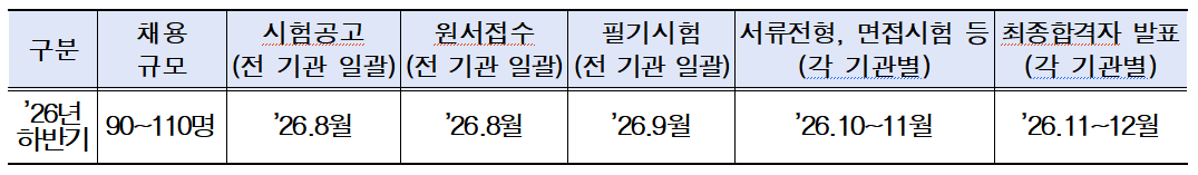 8월 원서접수·9월 필기시험…서류·면접은 기관별 진행