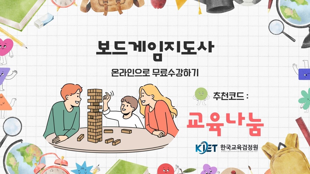 이에 한국교육검정원에서는 보드게임지도사 자격증 취득을 돕기 위해 온라인 무료 교육을 지원하는 한편, 그 외 늘봄학교 관련 수업 및 자기계발 과정 80여가지를 무료 수강할 수 있는 이벤트를 진행한다.