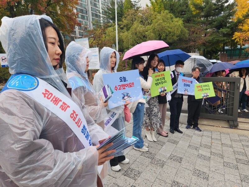 수능 당일인 14일 오후 3시 30분부터 대전시 고등학교 정문 앞에서 학교폭력 및 디지털 성범죄 예방과 마음건강 증진을 위한 캠페인이 진행됐다.