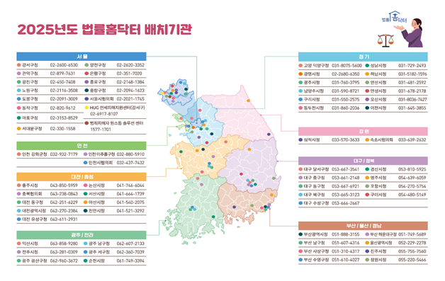 ‘법률홈닥터’는 2012년부터 운영되고 있는 법무부 인권국 소속의 공공 법률복지 프로그램이다. 지방자치단체나 사회복지협의회 등 지역 거점기관에 변호사가 상주하며, 경제적·사회적 취약계층을 위한 무료 법률상담을 진행한다.