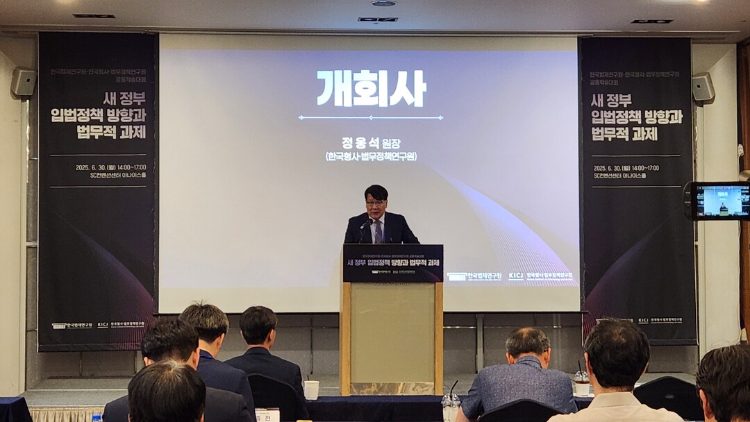 한국형사·법무정책연구원(원장 정웅석)과 한국법제연구원(원장 한영수)은 6월 30일 오후 2시, 서울 SC컨벤션센터 아나이스홀에서 공동으로 「새 정부 입법정책 방향과 법무적 과제」를 주제로 학술대회를 개최했다. 두 연구기관은 이번 행사에서 AI 기술 확산과 외국인 정책 전환이라는 두 가지 시대적 과제를 중심으로 실효성 있는 국가 정책 수립 방안을 논의했다.