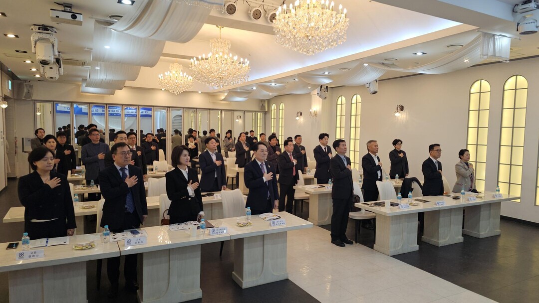 | ▲문기주 총재를 비롯한 GTBA 주요 인사들이 국민의례를 통해 출범식의 막을 열고 있다. / 사진 = GTBA 제공 |