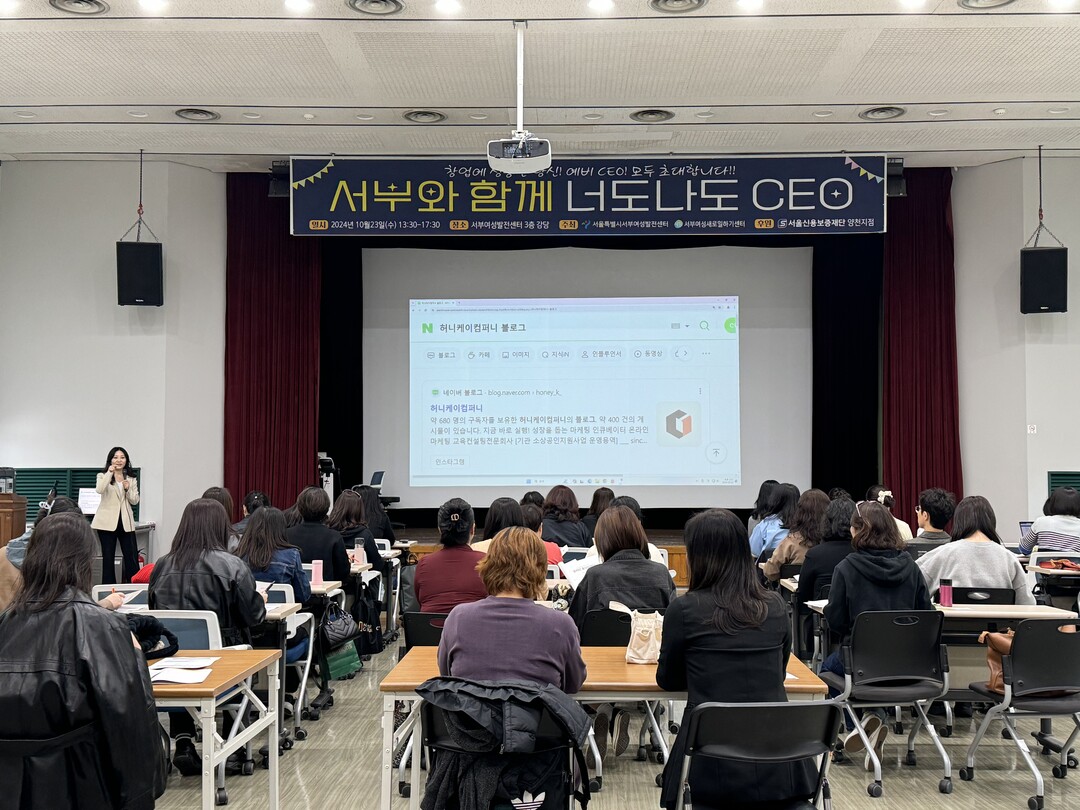 행사에는 40여 명의 창업자와 예비 창업자들이 참석했으며, 다양한 프로그램을 통해 실질적인 조언과 지원을 주고받았다. 특히, ㈜허니케이컴퍼니 김은정 대표의 ‘단골 만드는 온라인 홍보 마케팅 전략’ 특강은 실질적인 마캐팅 전략으로 많은 참석자들의 이목을 집중시켰다. 또한 서부여성새로일하기센터가 준비한 ‘도전골든벨’은 창업 관련 지식 퀴즈와 재미를 더해 참여자들의 호응과 적극적인 참여를 이끌었다. 여기에 더해 자유로운 분위기 속에서 진행된 네트워킹 시간에는 핑거푸드가 제공되어, 참가자들은 더욱 편안하게 의견을 나누며 다양한 사례와 성공적인 창업을 위한 정보를 교환했다.
