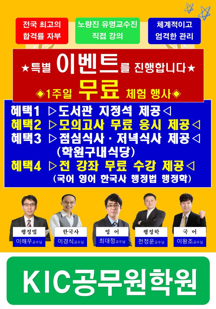 경북 구미 KIC공무원학원, 전국 최고 합격률을 자부하며 특별 이벤트 진행 중