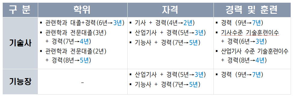“기술사·기능장 문턱 낮춘다”…경력요건 최대 4년 단축