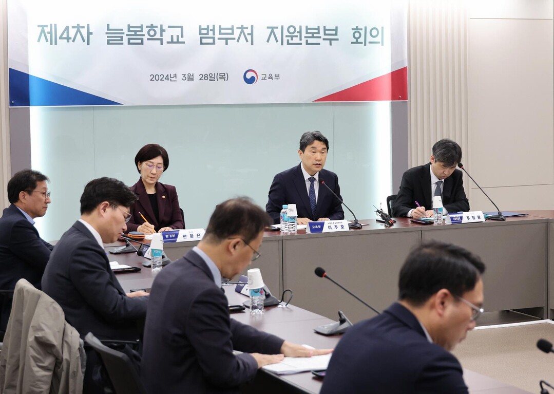 <교육부는 3월 28일(목), 정부서울청사에서 제4차 늘봄학교 범부처 지원본부 회의를 개최했다. 사진=교육부>