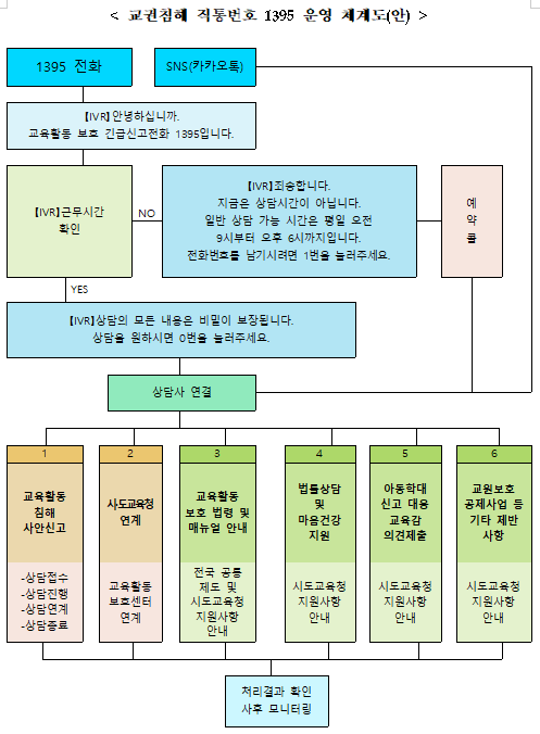 [피앤피뉴스=마성배 기자] 신학기 개학일 3월 4일부터 ‘교권침해 직통번호 1395’를 개통한다. 교원 누구나 전국 어디서든 ‘1395’를 누르면 교육활동 침해 사안 신고, 심리상담과 법률지원, 교원보호공제사업 등을 원스톱으로 도움을 받을 수 있다.