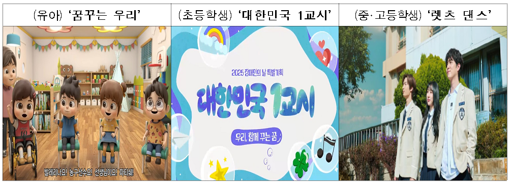 교육부는 2005년부터 해마다 장애인의 날을 계기로 연령별 맞춤형 장애 이해 교육 콘텐츠와 방송 프로그램을 제작·보급해 왔으며, 올해도 유치원부터 고등학교까지 다양한 교육자료를 현장에 제공한다.